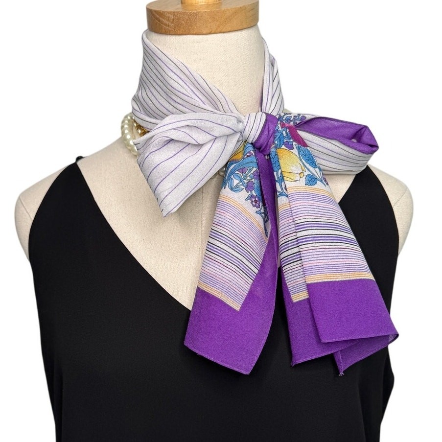 So sweet Saint Michael vintage Italian chiffon tulip stripe long scarf! Looks fab on your handbag •Size: 11x54" •Condition: Excellent vintage – like new •Color: purple white yellow blue black gray magenta pink Bundle for combined shipping! Pictures are part of the description. Color may vary by screen. Sizes vary between designers. ALL preowned items can be expected to show normal signs of wear. Smoke free, DOG FRIENDLY home. 10% of net sales go directly to charity at my local food bank. tags: spring summer fall vintage preppy tennis prep country club garden party polo coquette elegant timeless chic sophisticated classic classy church brunch interview office business work meeting boss secretary corporate cottage style