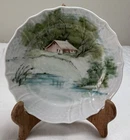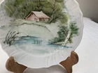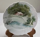 Up for sale is a vintage salad plate. Decorative. Hand painted. The design is a country house, trees, pond, fence. The colors are green, brown, white, blue, beige, multi. Scalloped edges. Vintage/antique. Unsigned by artist. Made in Germany - Hutschenreuther - from Dresden. (Signed on the back.) No chips. Very, very good condition. Thanks and happy shopping. I will combine shipping charges. Smoke free home. Please make payment in three days. ~~~~🌻🌷🌺Please visit my eBay store: 🇺🇸webbsamericancountry1🇺🇸 for over 2000 vintage and collectible items.~~~~🌹🌻🌷