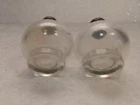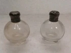 This vintage set of salt and pepper shakers includes two small round glass shakers with metal lids. The shakers are clear in color and feature a classic shaker style design, making them suitable for all occasions. With a diameter of 2 inches, these shakers are original pieces from the 1950s and are ideal for adding a touch of retro charm to any dining table. The set comes with both a pepper shaker and a salt shaker, each equipped with a lid for easy dispensing of seasonings.