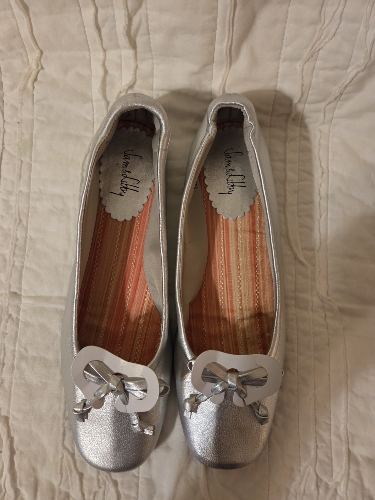 These Vintage Sam and Libby Shoes are a timeless addition to any woman's wardrobe. The slip-on ballet flats feature a round toe, flat heel, and a charming bow accent. Womens US 7.5