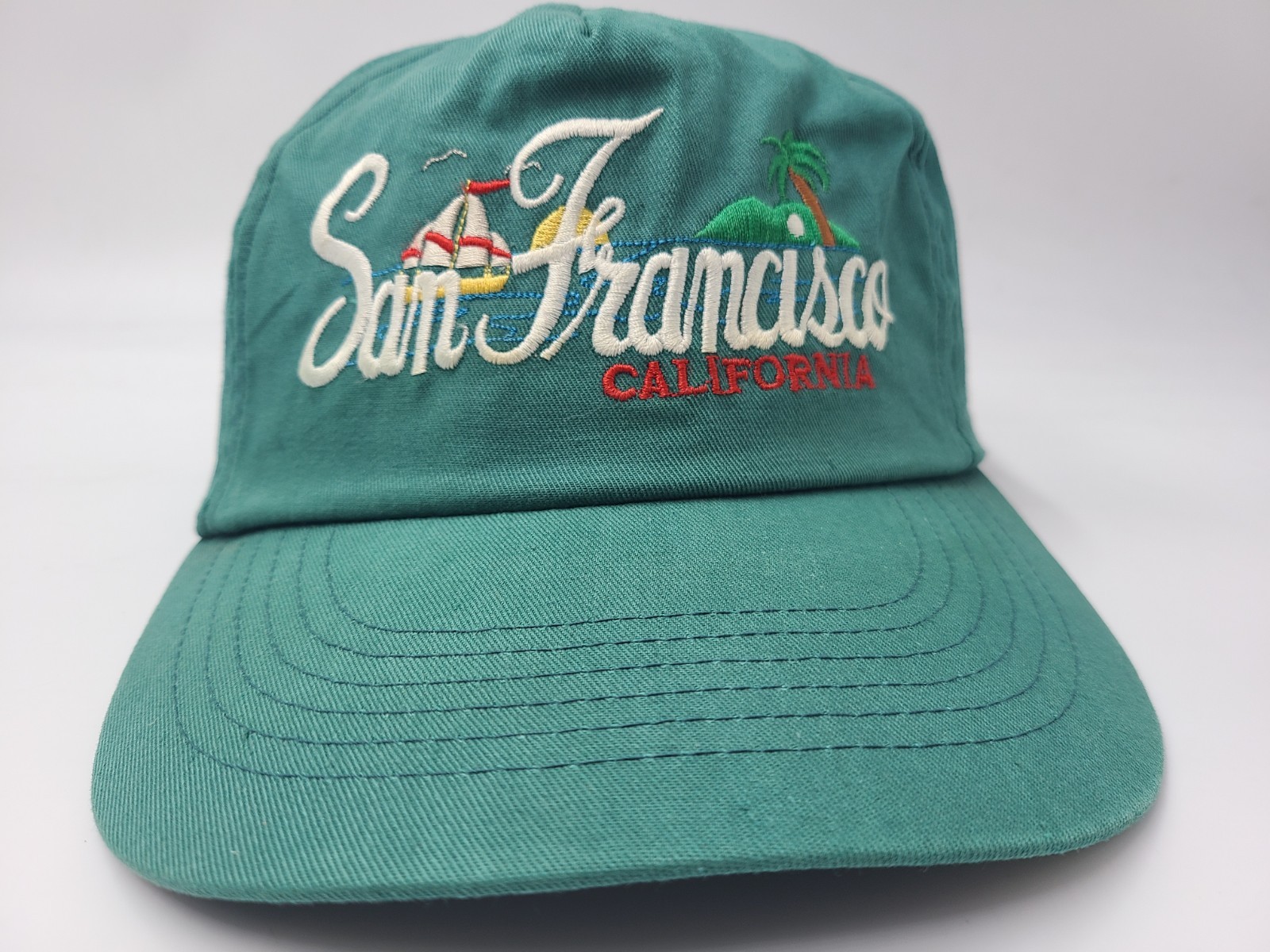 The hat seems best suited for L-XL sized heads. Also has stains/discoloration on the brim and underneath the brim as seen in photos. Vintage San Francisco California Boat Palm Trees Snapback (Seems L-XL) Hat Cap. EACH ADDITIONAL HAT PURCHASED IS ONLY $1 ADDED SHIPPING!