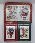 Both decks have been open but show very little signs of use. Comes in nice embossed metal tin.