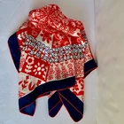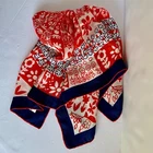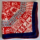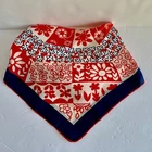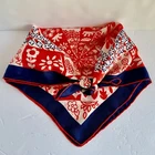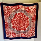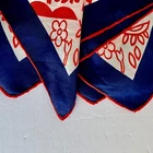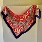 Vintage - Scarf - Red/White/Blue - Flower Design - 23" x 23" - Red / White / Navy Blue - Navy Blue Border - approx. 1 1/8" -- 1 1/4" wide - Red Rolled Edging - Flower Design arranged from the center outward - Whimsical looking - Appears to be Silk, but cannot verify because there is no tag - Comes from a Smoke and Pet free environment. SHIPPING: USPS Ground Advantage Service. No International sales. THANK YOU FOR LOOKING!