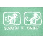 This vintage green T-shirt features a playful "Scratch N' Sniff" design with two adorable monkey graphics. The soft cotton material offers comfort and style, perfect for casual wear. The unique and humorous print makes it a standout piece in any wardrobe. Capture these moods: playful, humorous, vintage, comfortable, unique, casual, fun, graphic, nostalgic, soft, relaxed, standout, charming, expressive, whimsical, lighthearted, quirky, iconic, everyday, cool, trendy, timeless, artistic, engaging, cute, memorable, cheerful, stylish, cozy, spirited, classic, imaginative, lively, statement, creative, eye-catching, entertaining, witty, fashionable, retro, character material: 100% cotton made in Honduras color: light faded green condition: faded, print has cracks, two tiny holes, spots in the front, penny sized hole on one of the armpits size on tag: XL mannequin is 6' 2" and a size medium length: 29 armpit to armpit: 24