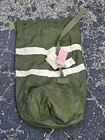 Vintage Seabees Military Duffle Bag Backpack Straps Green Nylon US Airline Tags Vintage Duffle Bag. Era 1970s. Unique personal airline tags from day of active use. Bag sold as is seen. Worn a s used. See pictures. Product will be shipped timely and packaged with care. Offers are encouraged. Please feel free to reach out with questions. Please see pictures. Thank you. Good used condition. Light wear from age and use. Markings from age and use. See pictures This vintage Seabees military duffle bag pack is a must-have for collectors and enthusiasts of militaria. Made in the United States, this bag is a rare find with US airline tags and a unique design. It's perfect for those who love to collect personal, field gear and bags & packs. The bag is made of durable green nylon and features straps for easy carrying. Its spacious interior makes it ideal for storing your belongings, while the exterior provides a sleek and stylish look. This item is a great addition to any militaria collection and is sure to impress. BT1 Approximately 22 inches wide 38" tall, see pictures.