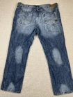 The product is a pair of vintage Sean John jeans in size 40x32 with a relaxed fit. These wide-leg jeans are distressed and have a hip hop theme, making them a stylish choice for men looking to add a touch of urban flair to their wardrobe. With a regular waist size of 40 inches and an inseam of 32 inches, these jeans offer both comfort and style for fans of the brand and hip hop culture.