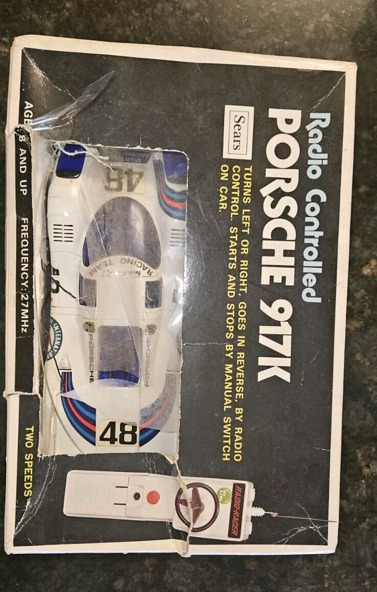 Vintage Rare Sears Roebuck Muzzler Martini Race Car RC Parts Repair Porsche. What you see is what you get! The picture you see is actually what you are bidding on. The car does not work but can be used for parts. The car shell is in very good condition as you can see.