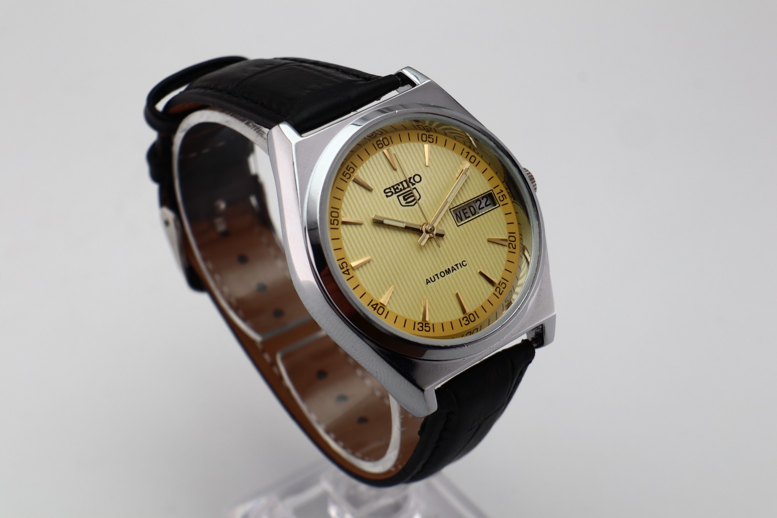 First of all, GREAT customer service. I accidentally bought two watches. They quickly canceled the second purchase and threw in an additional black band because I made the comment I liked black more! The item came in great condition and at a decent value. I’m very happy with this purchase and highly recommend Vintage Watches Studio!