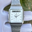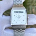 Vintage Seiko Ana/Digi "Fully Frosted" Japan Made Men's Quartz Watch H557-5080 Up for sale a Seiko Ana/Digi men watch. >Watch is in good working condition. >It has some signs of usage. >This watch features a rare and unique frosted dial, case, and bracelet, making it an iconic and eye-catching timepiece. >The watch has an Ana/Digi dual display with a digital screen at the top and analog dial beneath the digital LCD display. >Watch has dual time display, allowing you to set the time in two different time zones. >The digital features of the watch include the day, date, time, alarm, stopwatch with start, stop, and reset functions. >Watch Light and Alarm is working. >The watch has a white analog dial with silver/black stick hands and silver hour markers, making it eye-catching. >Watch has original stainless steel Seiko bracelet. >Case size: 31 MM-----Lug to Lug: 38 MM >End link size: 19 MM-----Bracelet wrist size: Adjustable bracelet Thanks! Please visit my eBay account and do follow, I am selling Classic and rare vintage gems watches at reasonable prices. Shipping worldwide. May take 10 to 18 days. BK----039–MD