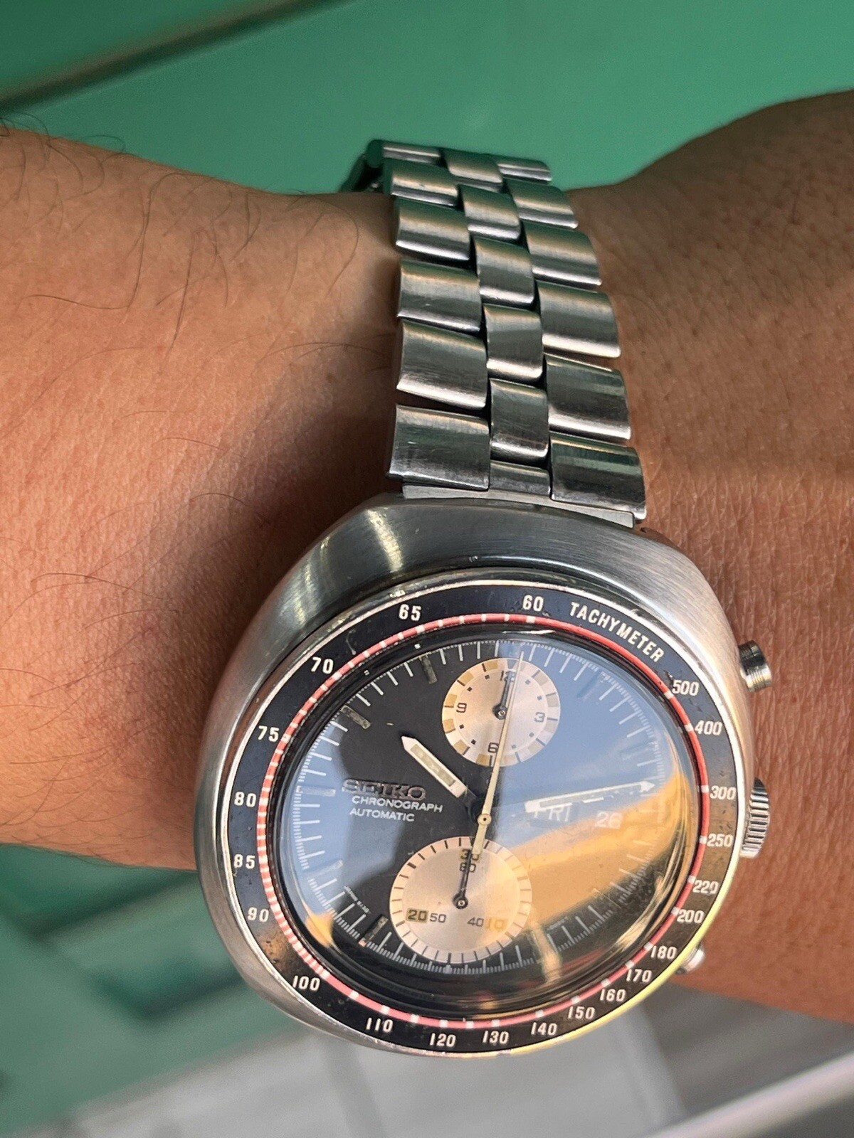 Seiko Chronograph Automatic Cal 6138 0011 , working. Returning as seen in the picture Seiko chronograph 6138-0011 automatic calendar English (not water resistant) from about 1970 reference 6138 with automatic movement and stainless steel case with tachymeter bezel The watch is working, returning to zero although I am not aware of any service history. Stainless steel case, with central seconds hand. The hour hands and dial have some marks or stains noticeable in the photos. The stainless steel case has some marks and wear. The watch runs and keeps time correctly, it may gain or lose a few minutes as there is no known service history. Water resistance is not guaranteed. The watch is completely original, it only has a replacement plastic mica Original Seiko Japan B steel bracelet It is sold as seen and is completely original and vintage. It is sold as seen. The shipping price is due to the fact that it is sent only by DHL, Shipments are made only by DHL within 5 business days after payment is made, it takes 15 to 30 days to reach its destination, the buyer pays the customs fees, the packages can be reviewed at customs and generate taxes. Returns are accepted within a period of up to 30 days, the buyer covers the return costs