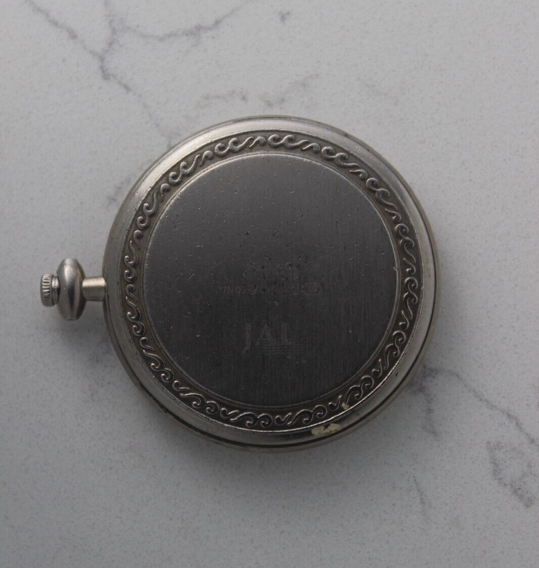 Features a beautifully textured silver-tone dial with black Roman numerals and a matching set of hands. A small seconds subdial at the 6 o’clock position. The watch is housed in a metal case with an aged patina. The crown and bow are intact. Has not been tested for accuracy. This timepiece is ideal for restoration or display. Untested watch – may require a battery replacement or repair. Sold as-is for parts or restoration, with no guarantees. Due to the nature of this listing, returns will not be accepted.