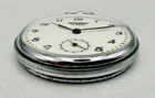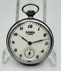 Vintage Sekonda 18 Jewels Pocket Watch – USSR Made – Working – 3602 Movement Description: A classic vintage Sekonda 18 Jewels pocket watch, made in the USSR and powered by the 3602 movement . This timepiece has been tested and winds, ticks, and keeps good time over 24 hours . A fantastic addition to any collection, or perfect for daily use by a vintage watch enthusiast. Key Details: Brand: Sekonda Movement: 3602 (with serial number 379334) Jewel Count: 18 Jewels Country of Origin: USSR Dial: White with black numerals Case Material: Plated metal Condition: Good condition overall with some tarnishing to the plating on the case Performance: Winds and ticks along, kept good time over 24 hours Dimensions: Case Diameter: 44.8mm Condition: Fully working – winds and ticks along Good timekeeping over 24 hours Some tarnishing to the plating on the case Case and crown show wear from age and use Summary: This vintage Sekonda pocket watch is a great piece for collectors of Soviet-era timepieces or anyone looking for a stylish, functional pocket watch. It offers classic Soviet-era craftsmanship and is an interesting piece of horological history. As usual, this item will be packaged carefully and dispatched with tracking. International shipping is available upon request.