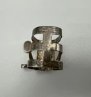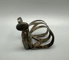 Vintage Selmer Ligature Made in France - For a Saxophone? I believe it fits a mouthpiece for a Saxophone. It is pretty small. See pictures for approximate measurements. It is bent and has wear. See picture. I found one similar online that was for a Tenor Saxophone