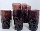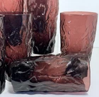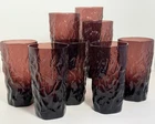 Set of eight vintage Seneca Glass “Driftwood” tumblers in a rich amethyst / plum color. The Driftwood pattern is known for its organic, textured surface inspired by the look of weathered wood, giving each glass a sculptural, tactile quality. Seneca Glass Company, founded in West Virginia in 1901, was well known for producing distinctive mid-century glassware with bold textures and colors. The Driftwood pattern was especially popular during the 1950s, aligning with the era’s appreciation for natural forms and modern design. These tumblers are substantial in hand and visually striking, making them perfect for everyday use, barware, or display in a mid-century modern setting. ⸻ 📋 Details • Set of 8 tumblers • Seneca Glass Company • Driftwood pattern • Amethyst / plum colored glass • Textured, organic surface • Mid-century modern design ⸻ 🔍 Condition Very good vintage condition. No chips or cracks observed. Light surface wear consistent with age and normal use.