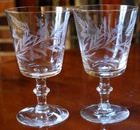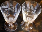 Vintage Set 2 WATER GOBLET GLASSES Hand Blown ETCHED PLANTS BOWL & FOOT 5.75" high x 3 3/8" across tops, foot is 2 5/8" diameter * Please check my Store under Vintage Glassware for the matching set of Liquor Cocktail Glasses [a set of 4] * Excellent condition, pristine- both glasses are absolutely without damage, no scratches nicks chips fleabite dings or signs of wear, sparkling clean. Gorgeous lush hand etched grasses and berries. Unusual wafer stem. See all pics and use zoom. Very collectible. Extremely well made to last a lifetime. Weighty. Circa 1930s Ships fully insured & w tracking provided *Please check my Store under Vintage Glassware for many more stemware sets of all ages and styles, I am listing my large collection* As always, my items are meticulously packed with EXTRA bubble wrap and extreme care to insure a safe arrival. Please check my Ebay Store for MANY other listings of FABULOUS VINTAGE Collectibles, Glass, China, Tea sets and Cups, Art, Vintage Jewelry, Clothing and Hats, and VERY unique treasures. I add several new listings per week. Please note the following, dear fellow shopping enthusiasts: I strive to give you the VERY best service possible. I am not a dealer or professional, just a lifelong collector and lover of all things Vintage. I represent my items as accurately and clearly as I can, and believe it is always better for you to have too much information than not enough. Please ask ANY questions before purchasing, I will happily respond. I will promptly mail your item within 1 business day and post GREAT positive feedback for you as soon as payment is received. Remember, these are vintage items and will have reasonable signs of age and wear which only adds to their personality, appeal and "funky vintage-ness". They are not in their original boxes unless noted. I do not excessively clean items or remove age patina, as I want to leave that option for the buyer. Go Green! I try to re-use clean, almost-new shipping boxes when possible. I will gladly combine shipping on multiple items for you. Thank you for looking !