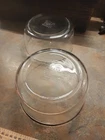 This vintage set of two PYREX bowls is a must-have for any kitchen. Made of clear glass, these bowls have a capacity of 1.75L (710 ml) and 7 cups respectively. They are oven, microwave, and dishwasher safe, making them a versatile addition to your kitchen. The bowls have a mid-century modern design and are perfect for all occasions. *see photos for measurements and wear