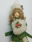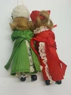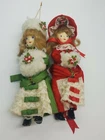 Vintage Set of 2 House of Hatten Victorian Women Ornaments Dolls. Lovely dolls in Victorian clothing and muffs. One has chip on top of foot. Both have House of Hatten tags on back underneath dress. They are 7" tall.