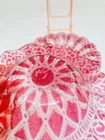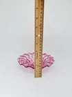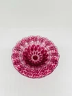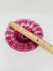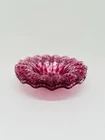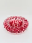 This vintage set of three Sydenstricker salad bowls is a beautiful addition to any collection. The round glass bowls feature a lovely cranberry color with a delicate lace ruffle design. Each bowl is 6.75 inches in diameter and has been signed by the artist. These handmade bowls were produced in the United States using fused glass techniques and are part of the Lace product line. The set includes a three-piece set of bowls, perfect for serving salads or other dishes. The production style is art glass and the bowls are an original, not a licensed reproduction. Add a touch of elegance to your table with this stunning set of vintage bowls.