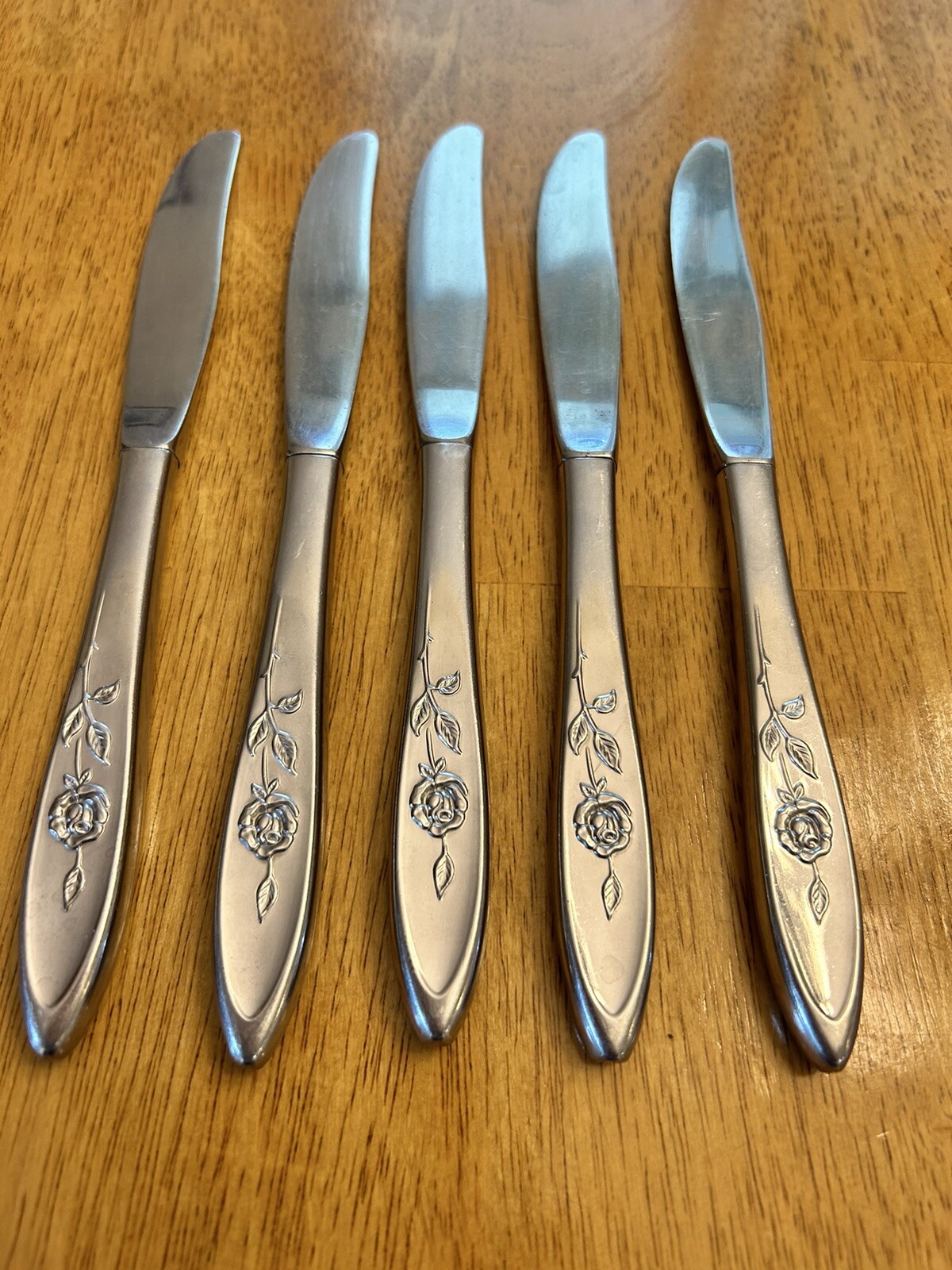 Vintage Oneida MY ROSE Community Flatware Set of 5 Dinner Butter Knives Betty Crocker Used vintage condition- refer to pics scuffing/scratching due to age & use