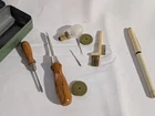 Vintage Sewing Machine Repair Kit Metal Box With Accessories & Tools Screwdriver. Condition is Used. Shipped with USPS Ground Advantage.