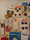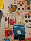 Vintage Sewing Notions Lot. Buttons, Eyelet, Zipper Repair Kit, Zippers