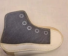 This vintage sewing repair kit features a grey tennis shoe design with a zip-around closure. The kit includes tags and is an original piece. The country/region of manufacture is unknown. Perfect for collectors or those who enjoy vintage sewing kits.