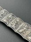 Beautiful and highly collectible vintage Siam/Thailand sterling silver jewelry lot. Includes two niello panel bracelets and one large feather-shaped brooch. Intricately crafted with traditional Thai mythology and cultural motifs, including dancing figures, mermaids, and divine imagery. Lot Includes: • (1) Wide niello panel bracelet – marked “Siam Sterling” • (1) Medium niello panel bracelet – marked “Sterling Made in Siam” • (1) Feather leaf brooch with etched deity – marked “Made in Thailand” Specs: • Total weight: 102 grams • Material: Sterling Silver (.925, marked) • Style: Niello / Enamel-on-silver detailing with traditional Thai mythological figures • Condition: Good vintage condition with age-appropriate wear, surface patina, and some tarnish—unpolished to preserve vintage integrity. Clasps are functional. Bracelets approx 6.75”-7” This is a gorgeous, investment-worthy lot for collectors of Siam silver, niello jewelry, or unique mid-century international pieces. These are becoming harder to find in matching condition and quantity. 📦 Ships securely with tracking.