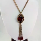 Chico's Heart Pendant Necklace This is a stunning pendant by Chico's. Deep Red acrylic red cabachon with red beaded tassels. A real cool fashion piece. The necklace is 20 inches long but is adjustable. The pendant measures 4 inches, including tassels. Chico's name is attached at the clasp as well as on the back. Condition: Great vintage condition