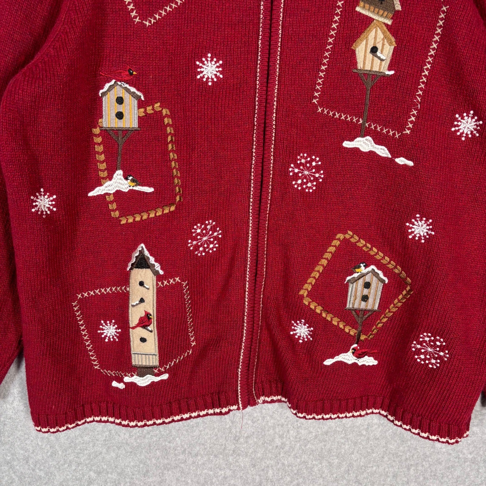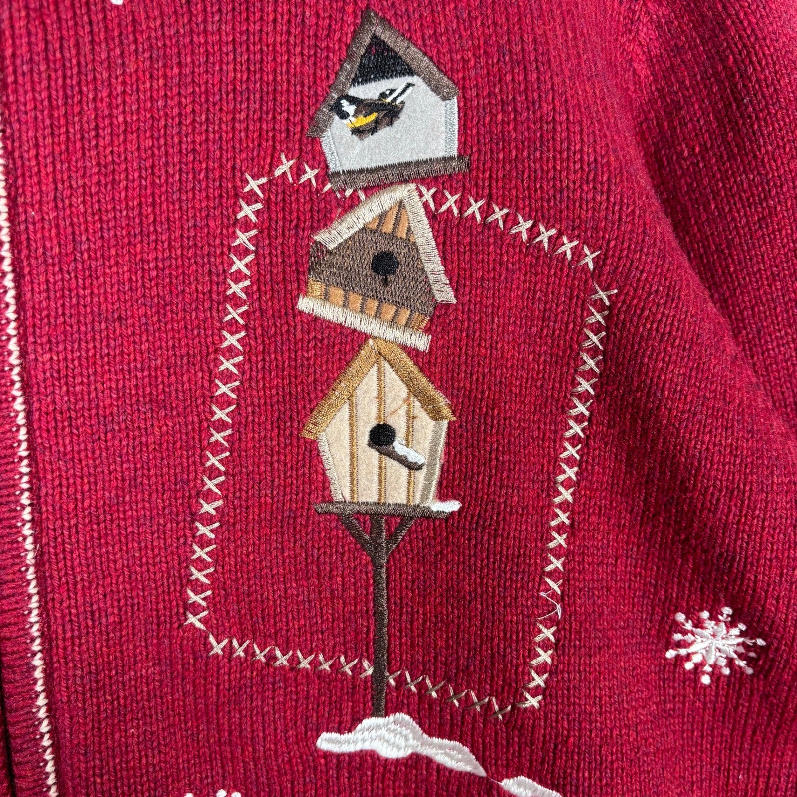 Vintage Silk Cardigan Sweater 2X Birdhouses Snowflakes Winter Cardinal Grandma Winter Warm Granny Red Zip Up 90s 80s EXCELLENT Pre-owned condition: minimal to no signs of wear, no stains or holes **Please see all pictures for full item condition and details** - Ships Same/Next Day, Professional Seller, Offers Welcome, Like or watch for price drops - Item in photos is exact item you will receive - I list new items daily, be sure to browse my store/closet for more items - Bundle pricing and combined shipping available for additional savings - Feel free to send a message