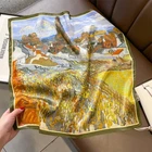 $ 8.18100% Mulberry Silk 26" Square Scarf Women Neckerchief Wrap Green Horse Pattern