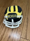 Says “let’s go blue” and plays a few seconds of fight song for Michigan football.