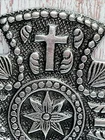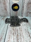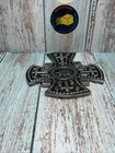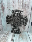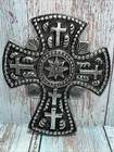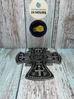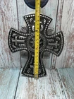 Vintage Silver Metal Cross to Hang with Scrolls,Flower Design, Made in India.Beautiful, heavy.EUC