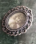 Vintage Silver Tone Cameo Photo-Holder Victorian Brooch Revival Metal Pin