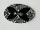 Description: Vintage Silver Tone Faux Marcasite Black Enamel Victorian Brooch Pin Oval Condition: Nice condition "Please Refer to Pictures" Measurements: 1 3/4" "Please refer to Pictures" Questions? Please email me...I will answer within 24 hours Payment: We accept Credit or debit cards, PayPal, Apple Pay and Google Pay Combine shipping: Yes I combine shipping, Please ask for a total after shopping. I will send you a invoice. International Shoppers: I use eBay International Shipping, buyer is responsible for all customs and duties Shipping: .. We do not ship to Puerto Rico, Hawaii, Alaska Returns: Yes, as soon as I receive the item back, I will gladly refund your money I try to be very thorough with my descriptions since most of my listings are preowned or vintage, but please review photos and ask questions before Buying. But Buy with confidence, I strive for Excellent feedback! Check out my store ....Myuniquefinds1 Thank you & please add me to your favorites....