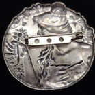 This vintage silvertone brooch is a whimsical piece that captures the essence of Victorian fashion. Originally a belt buckle, it has been transformed into an attractive brooch.The brooch features a beautiful flower design, perfect for any woman who wants to add a touch of elegance to her outfit. Made in the United States, this original piece is a must-have for any vintage accessories collector. The brooch is perfect for those who appreciate the details of vintage fashion, with a silver color that adds a touch of sophistication to any outfit. The piece is ideal for women who want to add a touch of Victorian style to their wardrobe, with a look that is both classic and timeless. This brooch is a unique and original piece that is sure to make a statement.