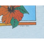 Vintage Single Stitch God Loves You Orchid Hawaiian Aloha Christian T Shirt S material: 50% cotton 50% polyester made in USA color: light blue single stitch at sleeves and bottom hem thin condition: two holes at the collar seam size on tag: L fits like: S mannequin is 6' 1" and a size small length (from the front on either side of the collar down to the bottom edge): 25.5 armpit to armpit: 17.5 shoulder: 17.5 all measurements are in inches and taken with the garment laying flat any major defect will be mentioned and/or photographed 16535