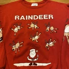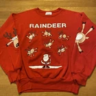 This Vintage Single Stitch Raining Reindeer Sweatshirt in size Medium is a festive and nostalgic addition to any holiday wardrobe. Featuring a graphic print of Santa Claus and raining reindeer. This is a pre owned vintage sweatshirt and does not have a size tag PLEASE look over pictures and measurements