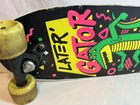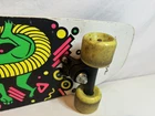 This vintage skateboard deck from Variflex is a must-have for any skating enthusiast. With a length of 27 inches, it's the perfect size for cruising around town or hitting up the skate park. The deck features the iconic "Later Gator" design, paying homage to the 80s skating scene. Made in the United States, this skateboard deck is a high-quality piece that will provide hours of fun for years to come. It's perfect for those looking for a vintage feel or for those who simply want a unique addition to their collection. With its classic design and sturdy construction, this Variflex Later Gator skateboard deck is sure to impress. In good preowned condition, will have scuffs & dings