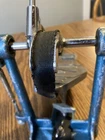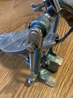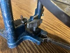 Vintage Slingerland Tempo King bass drum pedal is in working order. The blue paint is pretty worn. The hoop clamp and strap have been replaced with non-original parts.