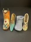 Add a touch of Victorian charm to your collection with these small ceramic and metal miniature shoes or boots. These collectibles feature a mixed material construction, with glossy finishes that lend them a classic aesthetic. Perfect for all occasions, these novelty shoes or boots are ideal for teens, boys, girls, adults, and unisex baby and toddlers. One Boot is marked OCC Japan. This miniature shoe or boot collectible comes unboxed and is an original product from mid 20th century China. These shoes or boots are not customized and are not signed. The design features a beautiful Victoria pattern and is a part of the Classic Collection. Adorned with multicolor and made of mixed materials, ceramic, and metal, these figurines are a must-have for any decorative collectibles or sculptures & figurines enthusiast. Please view pictures as they are part of the description, and certainly feel free to ask questions. All items carefully packaged and processed within two business day upon receipt of payment excluding holidays and weekends. T hank you for looking. This item is from a smoke free home. Please view all the photos. Check out all my other items. We ship in the US only.