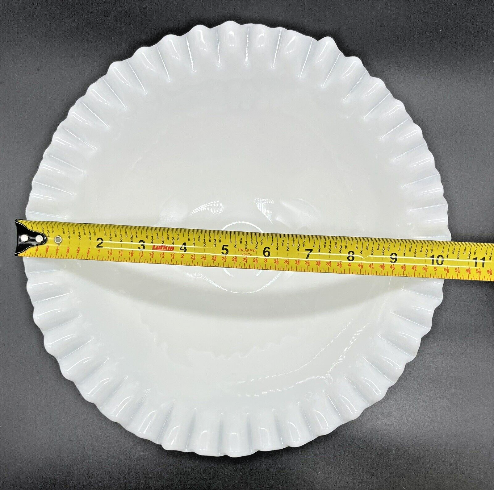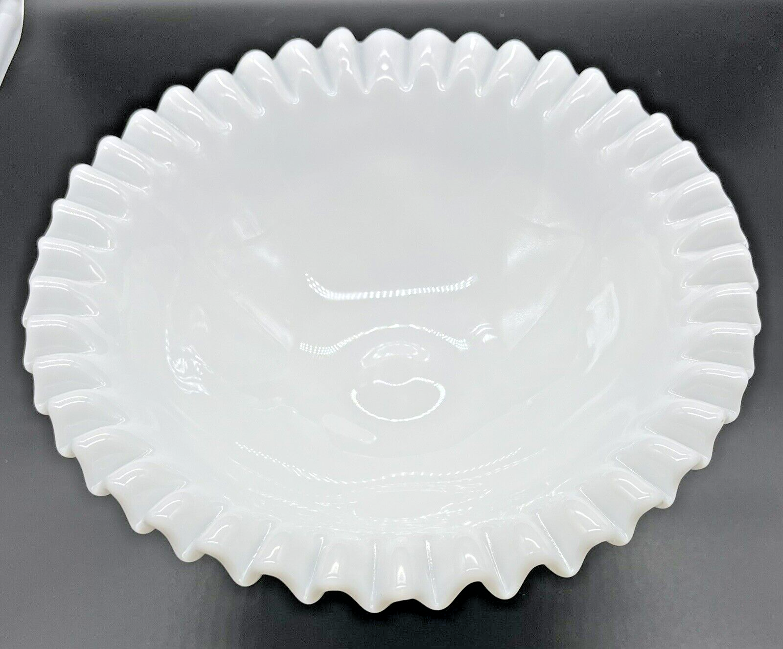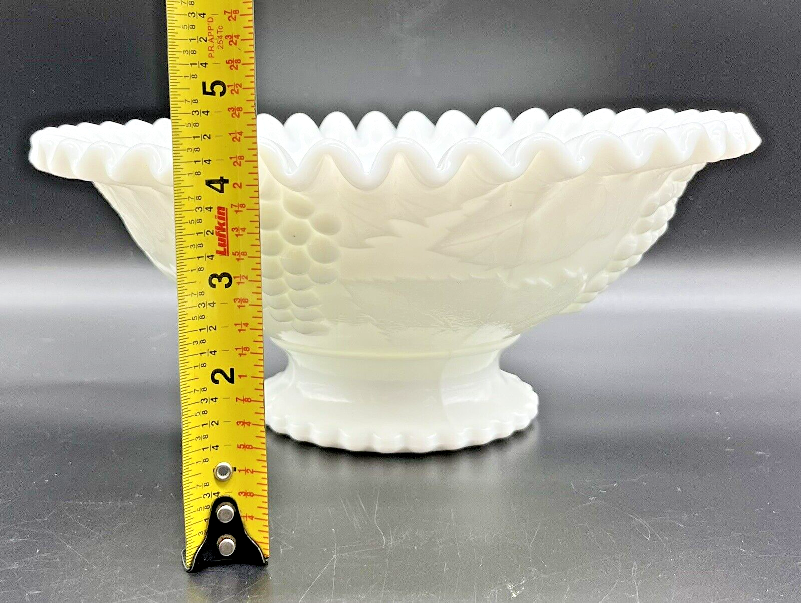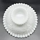 Vintage Smith Milk Glass 10" Footed Fruit Bowl Crimp Ruffle Edge Grapevine. A stunning Smith Glass fruit/serving bowl in excellent condition. It has 2 small manufacturer's discoloration marks. Shown in last photo. I am experienced in shipping glass items. Your item will be packaged with great care! Do you see more than one item that you want? I can combine shipping. Once you have clicked the “Buy It Now” option, request an invoice BEFORE you pay for your items. I am always on the lookout for vintage and sought after items. Please check out my sellers page for other great products!