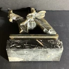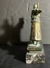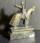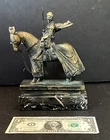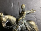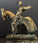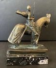 Here we have a great bronze sculpture on a marble base. This depicts a Crusader Knight on horseback, crafted from solid bronze. The details of the armor, horse, and sword are very well done, and will be a great addition to your home. This item comes from a high end estate, and was displayed in a glass case for many years. This measures 6.00” x 2.00” x 8.00” As always, we thank you for looking!