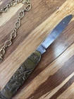 Vintage Solingen Germany 2 Blade Brass Handle Pocket Knife-Hunter- With Chain