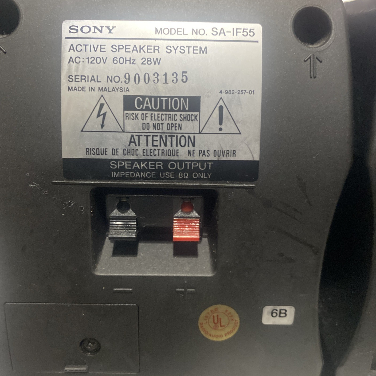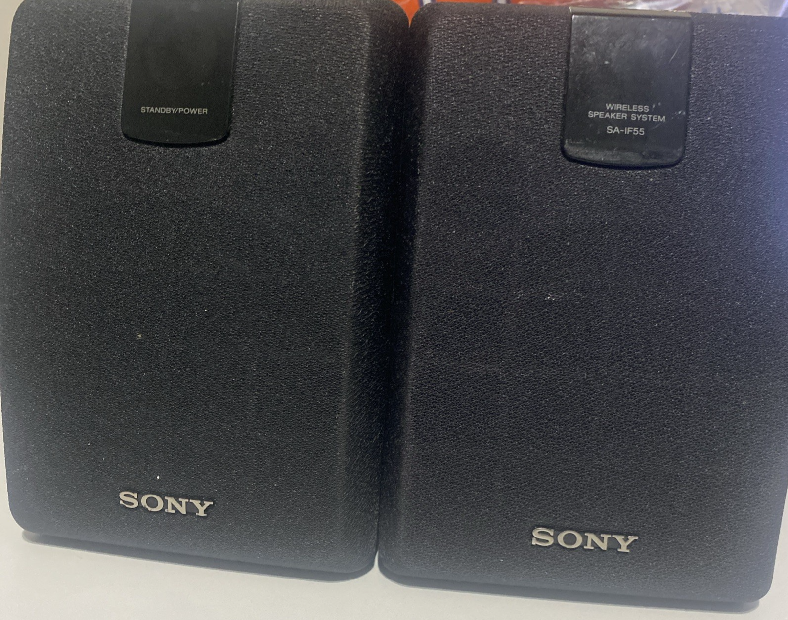 PRE -OWNED VINTAGE SONY WIRELESS SPEAKERS 2 MODEL No. SA-IF57 Power On NO RECEIVER! AC; 120V 60HZ 28W SERIAL NUMBER -9003135 MADE IN MALAYSIA MODEL- SA-1F55