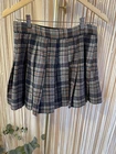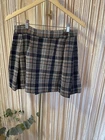 This is a stylish, vintage, plaid, wrap mini skirt from Sorrel, featuring pleats. Made from a wool blend, it offers warmth and a timeless look. Marked size Large Measurements: Waist: 13.5 Length: 15