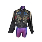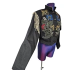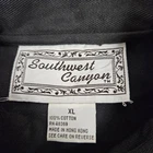 Vintage Southwest Canyon Embroidered Fringed Rockabilly Jean Jacket Size XL SF8 In excellent condition Vintage Southwest Canyon Embroidered Fringed Rockabilly Jean Jacket Size XL Women's. Features vintage 90s Southwest Canyon western black denim jean jacket, long casual sleeve with faux leather fringe, shoulder pads, bronze metal button front placket, stand up mandarin collar, colorful front embroidery, slightly cropped, vintage western jacket, lightweight. Made in Hong Kong Measurements laying flat chest 21" length 19" arm inseam 18" Fabric 100% cotton This is a pre-owned item that may show signs of wear. In excellent condition, no flaws.