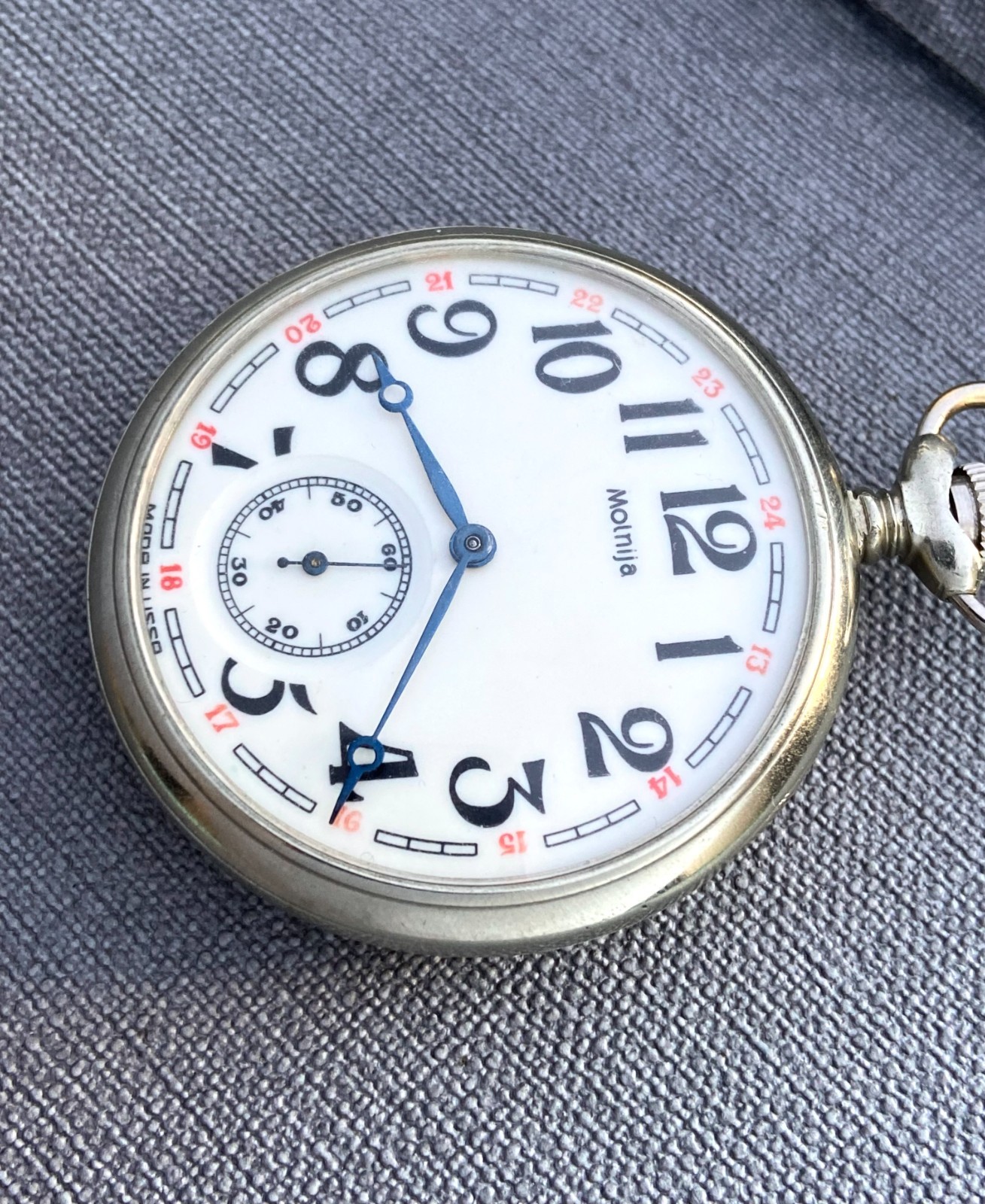 Molnija Soviet Vintage Pocket Watch 1970s Great model for themed professional vintage gift or for collection! The "Tale of Urals" the series of pocket watch Molnija had image stonemason - character from Ural fairy tales and associated with the Ural Mountains, historical events of the Urals. This pocket watch Molnija was made at the Chelyabinsk watch factory at 1970s. The case diameter is 50 mm, w/crown 54 mm . The mechanism cal. 3602 is mechanical and hand-winding The pocket watch has have an additional dust cover The pocket watch has good cosmetic condition for vintage pocket watch. The mechanism is fully functional and was served by a professional watchmaker. All the details you can see in the pictures. See the pictures . All the pictures are actual. Also I can provide combined shipping for several of my items. If you have any questions about delivery or about item, please let me know . Thank you. Dear customers, I send parcels by Ukrposhta worldwide from Ukraine without delay. The delivery time is now the same as before, regardless of the situation in my country. All services are working. Therefore, please not worry when ordering in my store. All parcels have been delivered to customers I sell vintage watches from USSR period. The watches was served and restored. The vintage watches are still good accessories. Also broken watch parts for creative projects and jewelry making. All the proceeds from sales support my family and support the economy of Ukraine.