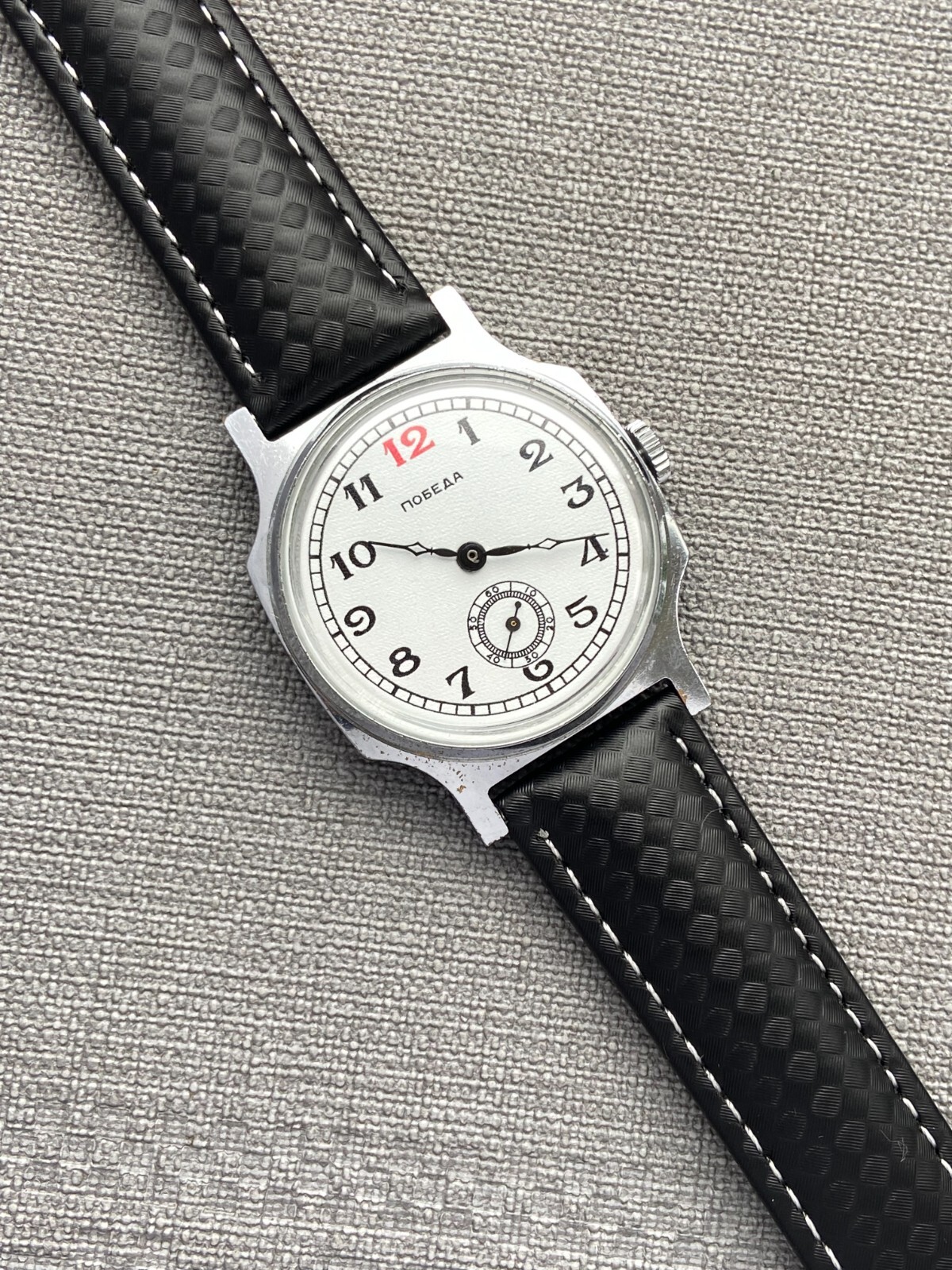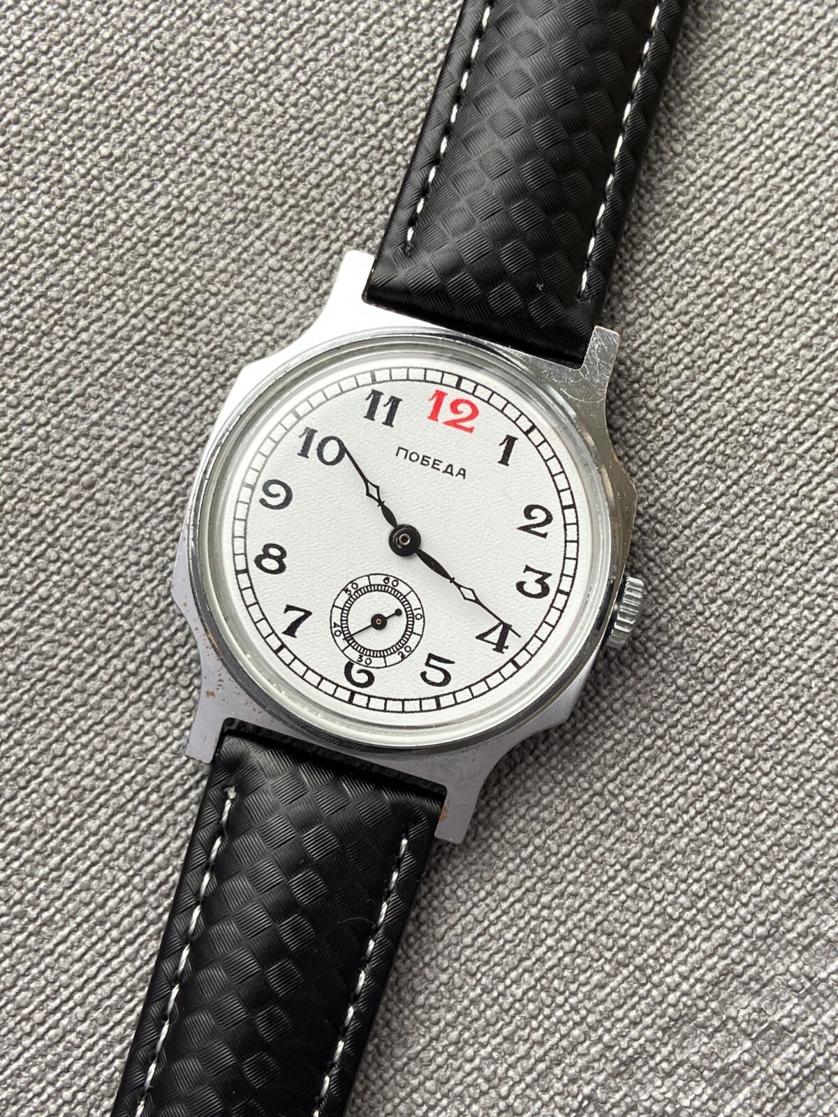Pobeda Vintage Mechanical Men's Wristwatch Great model of men's watch for gift ! Mechanism: 2602, side second hand, mechanical , hand -winding Number of jewels - 15 Size - case diameter : 34 mm without crown, with crown 37 mm. Lug (strap) width - 18 mm The watch has good cosmetic condition! The mechanism is fully functional , was served and keeps the correct time. All the details you can see in the pictures. See the pictures . All the pictures are actual. Also I can provide combined shipping for several of my items. If you have any question with delivery or about item, please let me know . Thank you. Dear customers, I send parcels by Ukrposhta worldwide from Ukraine without delay. The delivery time is now the same as before, regardless of the situation in my country. Despite the frequent lack of electricity due to shelling, all services are working at 100%. Therefore, please not worry when ordering in my store. All parcels have been delivered to customers I sell vintage watches from USSR period. The watches was served and restored. The vintage watches are still good accessories. Also broken watch parts for creative projects and jewelry making. All the proceeds from sales support my family and support the economy of Ukraine.
