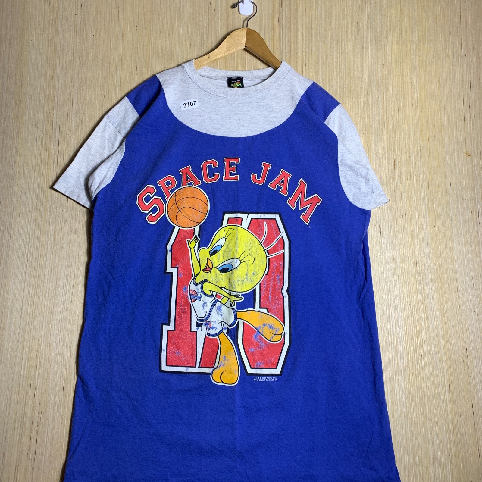 Dive into the nostalgia of the '90s with this vintage Space Jam graphic print T-shirt, a must-have for any collector or fan. Crafted from a comfortable blend of cotton and cotton blend materials, it features a classic crew neck and short sleeves, making it a versatile addition to your wardrobe. The shirt is accented with a variety of details including buttons, embroidery, and the iconic Space Jam logo, encapsulating the essence of the era. With its diverse theme ranging from hipster to sports, this blue T-shirt caters to various style preferences and is suitable for all seasons. The shirt is available in a one-size-fits-all (OSFA) size with a regular fit, ensuring a relaxed and comfortable wear. Whether you're out for a casual day or just lounging at home, this lightweight and breathable T-shirt is an ideal choice that brings a touch of retro flair to your day.