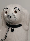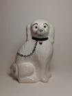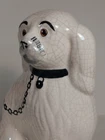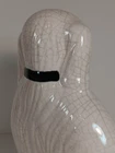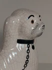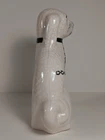 This vintage ceramic statue of a white Spaniel is a unique piece that would make a great addition to any mantle or collection. The hand-painted details and white glazed crackle finish give this statue a classic look that is sure to catch the eye. Measuring 11 inches in height and 7 inches in width, this medium-sized statue is perfect for all homes and is made of high-quality ceramic material. Its stylized Spaniel theme make it a great gift for anyone who loves dogs or collectibles. Don't miss out on the chance to own this rare and original piece!